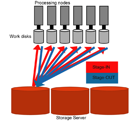 - Stage-IN (copy fies from storage server to work disks)