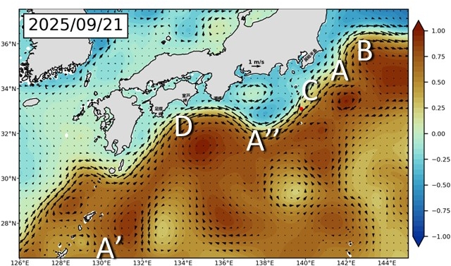 気象庁と海上保安庁は今回の黒潮大蛇行が2025年4月に終息したとの判断を発表しています(2025/8/29発表)。しかし黒潮大蛇行の余波は続いています(「2025年の黒潮のこれまでをふりかえる」参照)。
