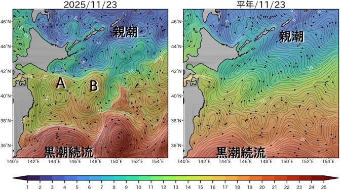 親潮系と黒潮系の水の勢力争い(親潮ウォッチ2025/11)