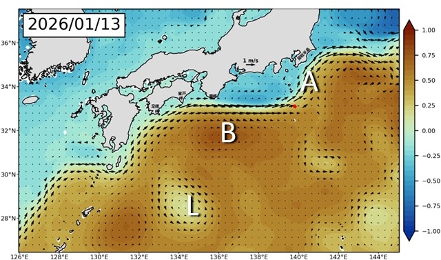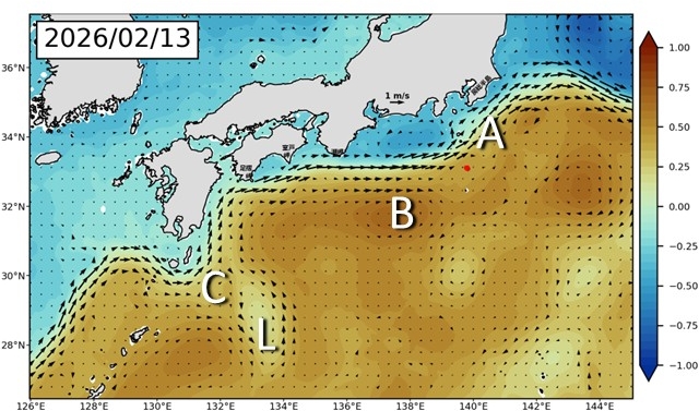 2026年2月13日までの黒潮「長期」予測(2025年12月17日発表)