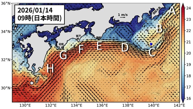 2026年2月3日までの黒潮「短期」予測 (2026年1月14日発表)