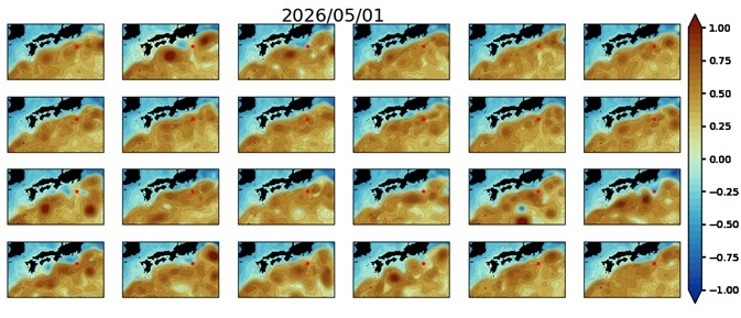JCOPE3Mは水平1/12度の分解能で2か月先までの予測を行っています。予測は毎日更新されています。