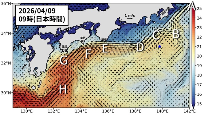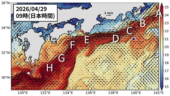 2026年4月29日までの黒潮「短期」予測 (2026年4月9日発表)