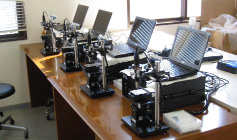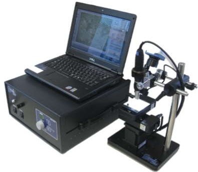 Geomill326は、CMOSカメラを搭載し、PC上での手軽なリアルタイム観察ができます。同時に、可動式ステージを搭載し、専用ソフトを利用することにより、CMOSカメラから得た切削部位の画像上の座標点を、可動式ステージの座標点へと変換し、ステージを稼働することにより、表面研磨したサンゴ骨格、貝殻、鍾乳石などの成長縞、堆積物のラミナ、鉱物粒子、魚の耳石などの特定部位に沿った自動切削ができます。