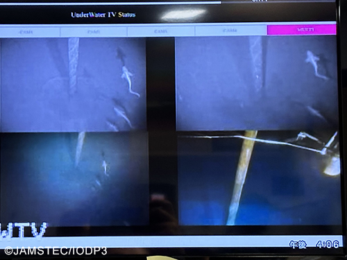 Operations have been progressing well, and as usual, we have our Underwater TV deep in the water to help us observe what is happening 7 km under the sea, closer to our drill hole. And it looks like our field site has some visitors!