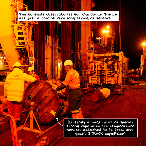 There is never a dull moment aboard D/V Chikyū. For most of Expedition 502E, we have been running on 24-hour operations, which means sometimes the science must visit the drill floor in the early hours of the morning, or the exceptionally late hours of the evening.