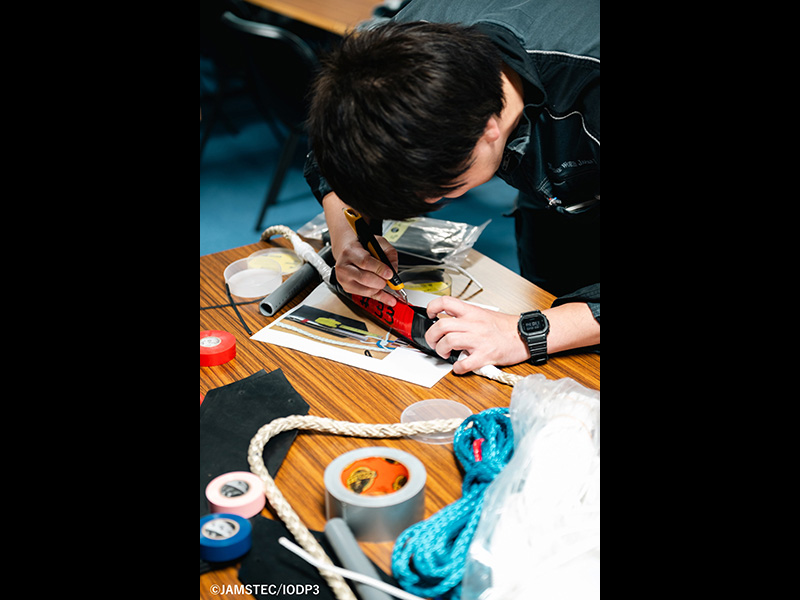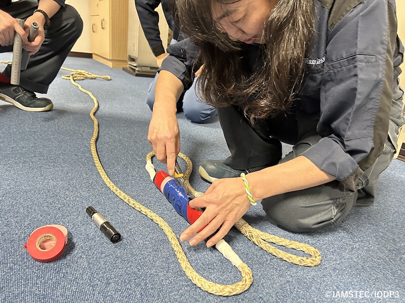 航海3日目。今朝4時ごろRe-engaging toolが着水、降下を開始しました。ラボでは、温度センサーの設置に備えて、ロープの取り扱い、カバーの取り外し・取り付けなどの実技練習を行いました。