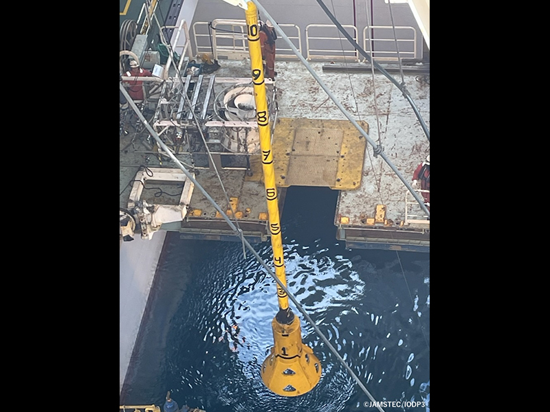「ちきゅう」は目標深度(海底下925m)まで掘削を完了。このあと孔内に温度計を設置するのための準備に入ります。