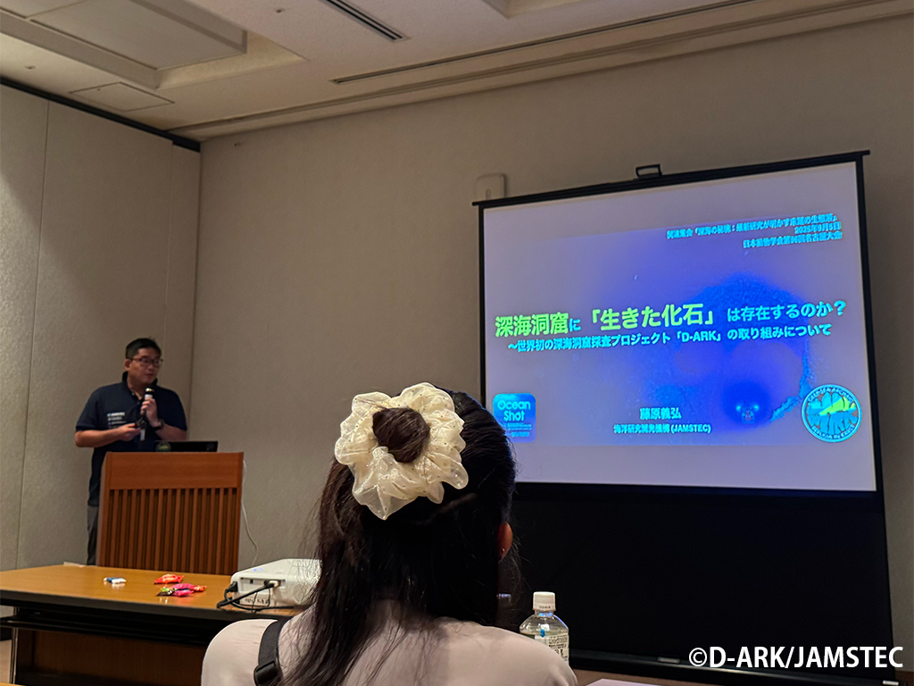 日本動物学会の大会二日目にはシンポジウムが行われ、多くの研究者が集まる中、D-ARKプロジェクトの紹介とこれまでの成果について発表しました。