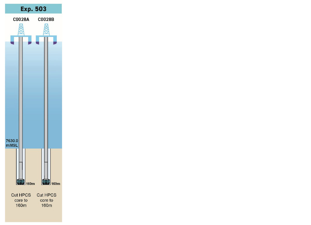 IODP3 Expedition 503 consists of drilling and coring two adjacent 10-5/8 inch holes with the Hydraulic Piston Coring System (HPCS) to 160 meters below seafloor (mbsf) at Proposed Site JTC-1A to continuously recover the full trench-fill sequence. If HPCS refusal occurs before reaching the target depth of 160 mbsf in the first hole, extended shoe coring system and/or extended punch coring system (ESCS/EPCS) coring will continue to target depth or to refusal depth.