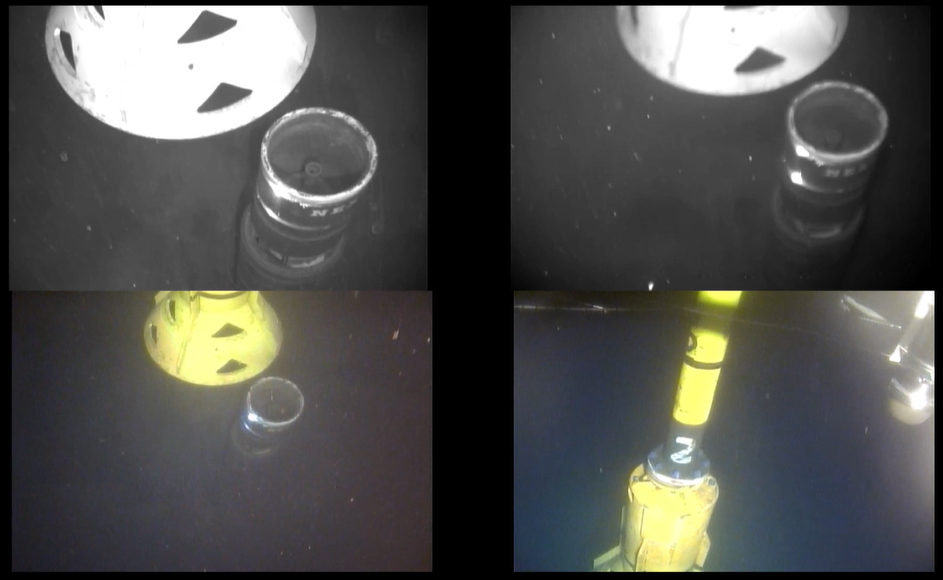 Photo1 Underwater TV camera image of the reengagement to Hole C0019Q on October 21.