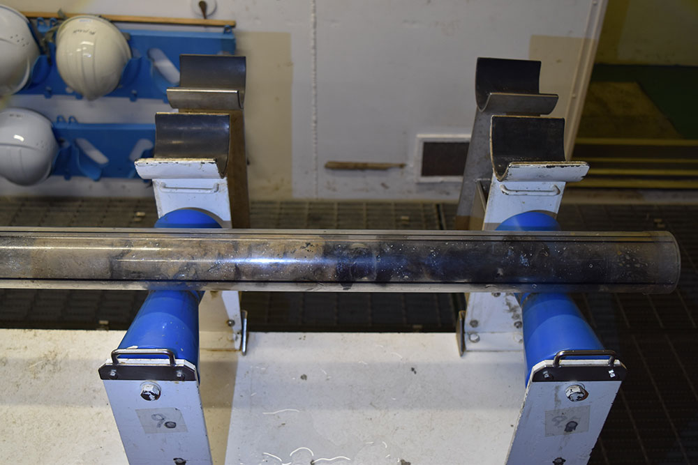 Photo 2. (13 November) Core sample collected by the SD-RCB, including the boundary between sediment and igneous rock.