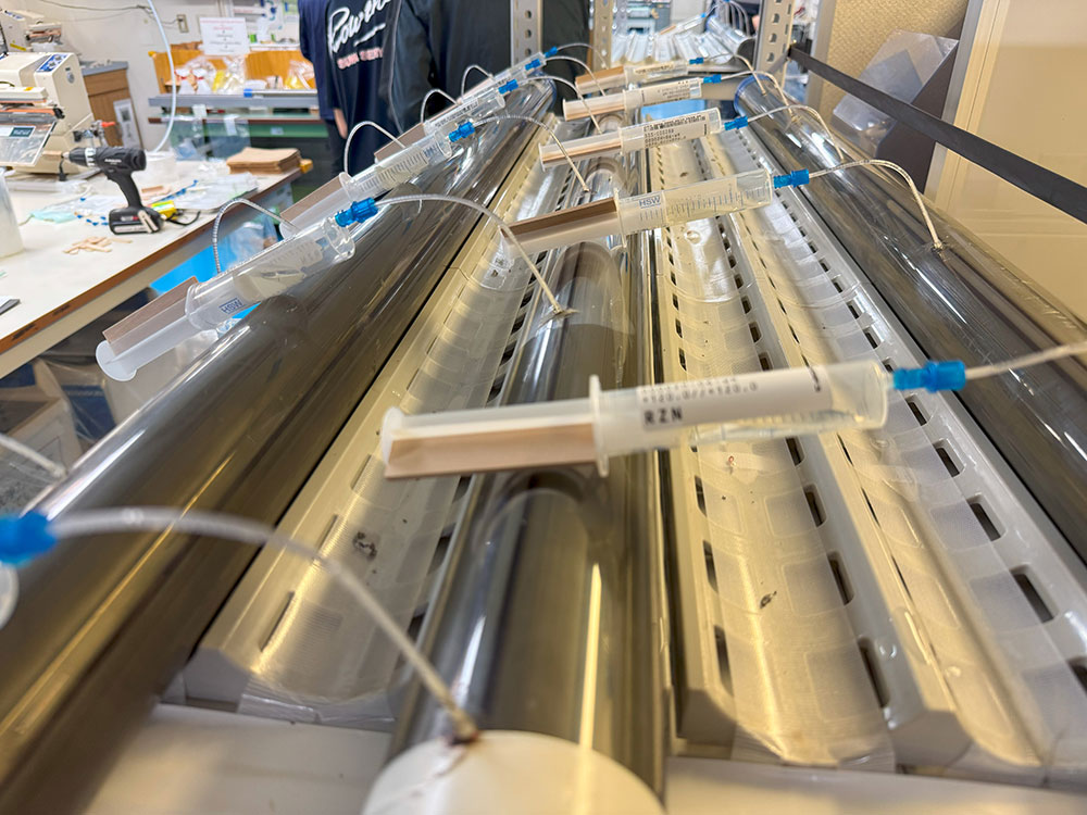 Photo 1. (27 November) The process of extracting pore water from core samples