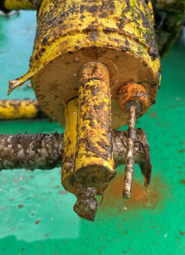 一番左の白い四角が紫外線発光面、真ん中の白い板が紫外線反射板、2本の筒がpHセンサー