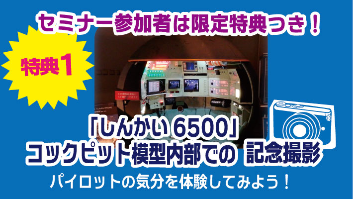 深海研究の最前線で活躍するJAMSTECの研究者によるセミナー&交流セッションのほか、抽選会やクイズラリーなど楽しい企画がいっぱい!