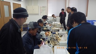 平成27年12月22日に鮫浦湾でマボヤ卵・幼生判別勉強会を開催しました。