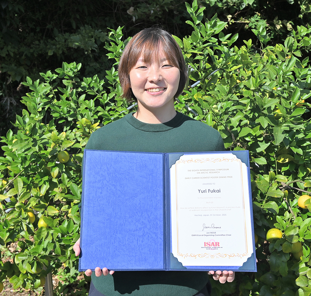 地球環境部門 北極環境変動総合研究センターの深井 悠里 ポストドクトラル研究員が、10月28日から31日にかけて八王子で開催された第8回国際北極研究シンポジウム(ISAR-8)にて、Early Career Scientist Poster Award Grand Prize(若手ポスター発表 最優秀賞)を受賞いたしました。