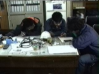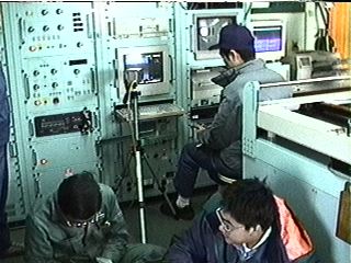 船内の研究室で昨日のソーナーデータを解析