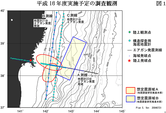 康宏)は、文部科学省が平成14年度から実施している「宮城県沖におけるパイロット的重点調査観測」の一環として、宮城県沖想定震源域において大規模な構造調査(研究代表者 東京大学地震研究所 金沢
