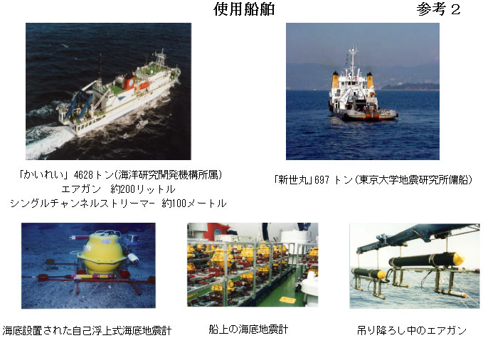 「かいれい」(海洋研究開発機構所属)および「新世丸」(東京大学地震研究所傭船)