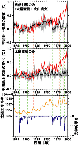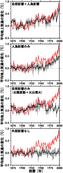 数値気候モデルによる20世紀の気候再現実験について - 20世紀における地球の平均地上気温の変動要因を推定 近年の昇温傾向は人間活動に因ると示唆 - |