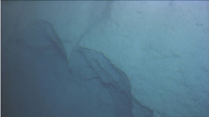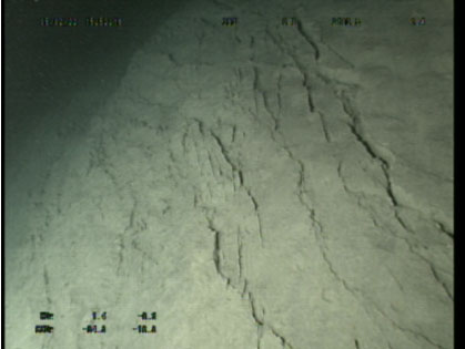 (1) 新規の崩落 水深2105m (2月22日のハイパードルフィン第383潜航) 写真提供:JAMSTEC/BPPT