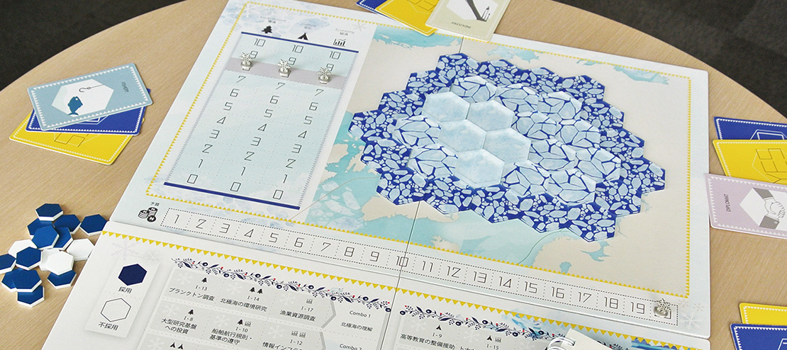 ボードゲームカフェに足を運んだり、国内の研究プロジェクトが作成したゲームを体験したり、海外の研究機関が作成したボードゲームについて調べたりした結果、いくつかの大事なポイントがあることに気付いたという。「今回のボードゲームでは、北極について知るという教育的な要素が非常に大事です。そうはいってもゲームは楽しくなければ遊んでもらえません。もう一つ大事なのが利便性です。例えば駒や紙幣などのパーツが増えると準備が煩雑になり、プレイするのに時間もかかります。教育性とゲーム性に加えて利便性の3つのポイントを満たすことが必要だと分かりました」