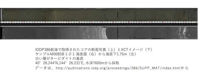 この写真のように、CT画像を見れば、タービダイトの層はすぐわかりますね。