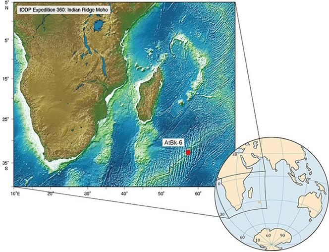 インド洋にある南西インド洋海嶺のあたりは、海洋地殻がきちんと作られず、このガブロやマントルの岩石を採取することができます。先に紹介した画像のガブロも、南西インド洋海嶺がある海底で採取したものです。