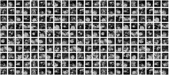 1979年から1998年までの20年分のシミュレーションデータから、熱帯低気圧とそのタマゴの雲画像を5万枚、熱帯低気圧に発達しなかった雲画像を100万枚切り出しました。