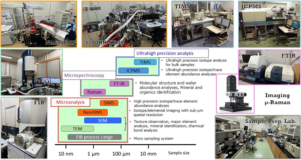 At the Geochemistry and Mineralogy Research Group, we aim to elucidate material cycles and environmental changes from the Earth’s surface to its deep interior by decoding the chemical and mineralogical information preserved in geomaterials, including drilling core samples. To achieve this goal, we employ a wide range of analytical techniques, such as trace element and isotope analyses, microstructural observations, and molecular- and crystal-structure analyses. We have also established an integrated analytical platform that combines state-of-the-art ultrahigh precision analysis, microanalysis, and microspectroscopy, and we continue to improve this system. This analytical infrastructure is applicable to a broad spectrum of material science and is particularly powerful for the analysis of rare and extremely small samples. For example, it enables innovative studies on the behavior of volatile components in the Earth’s interior, the mechanisms of earthquake generation, the metabolic functions of life in the deep subseafloor, and the physicochemical evolution of extraterrestrial materials.
