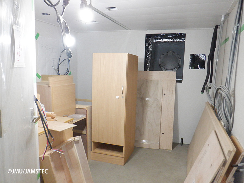 - ②後部観測甲板クレーンポスト&ジブレスト搭載