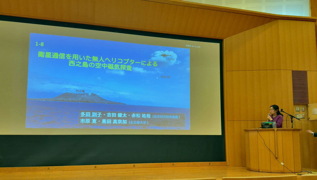 東京海洋大学で開催された海洋理工学会2025年度秋季大会のシンポジウム「空中ドローン(UAV)で海を知る」にて、【4-2402】課題より市原寛が「無人ヘリコプターを用いた西之島の遠隔観測」という招待講演を行いました。